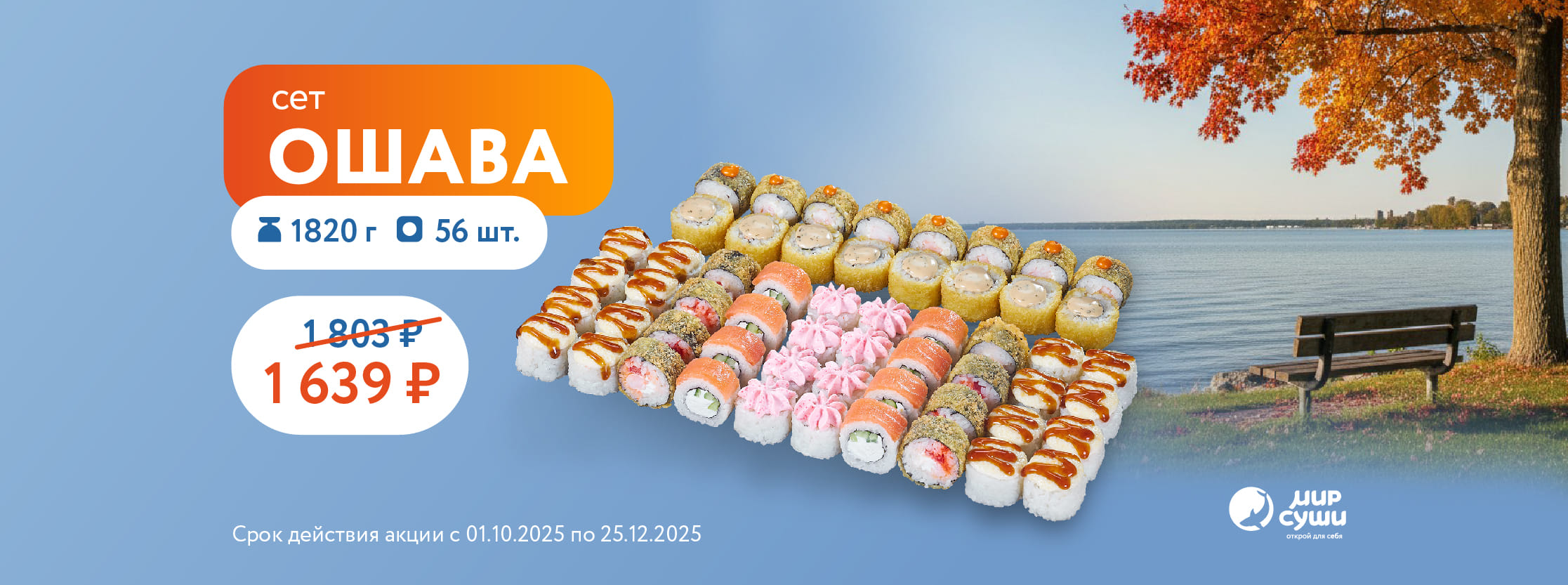 Когда за окном тоскливая погода, а душа требует маленького побега от будней — не спеши покупать билеты. Отправляйся в меню Мира Суши ;)